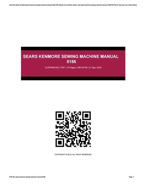 LQO - Read Online Sears Kenmore Sewing Machine Manual 5186 PDF Kindle Editon Open Library